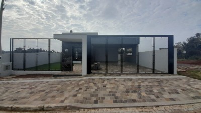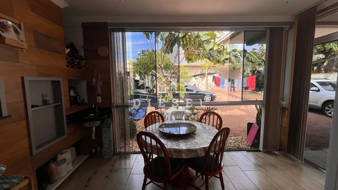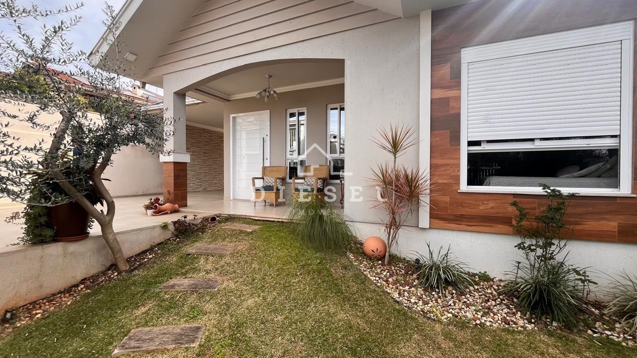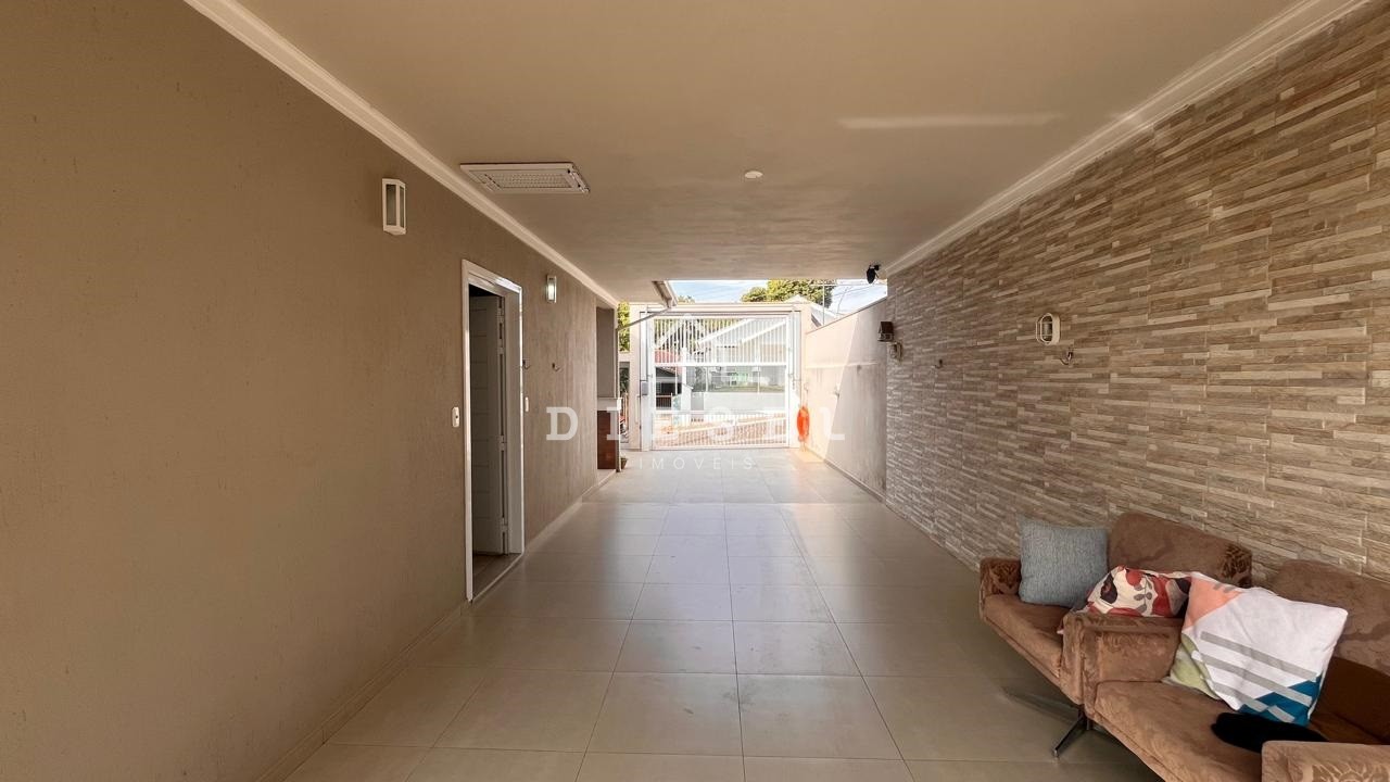 Descrição › Casa plana com 2 suítes (móveis sob medida), fica: 3 ar condicionados, cozinha sob medida, sala, móveis sob medida nos banheiros e lavabo também, alarme individual, câmeras de monitoramento, portão eletronico, grades em alumínio. Aberturas externa e interna em alumínio. Terreno murado e cercado. Quiosque mais um dormitório, sala com lareira e area gourmet, cozinha sob medida, banheiro sob medida, garagem fechada com lavanderia e armário, churrasqueira elétrica. Eletrodomésticos a combinar. Bela residência, em ótima localização no bairro, próxima a tudo que vc precisa. Agende uma visita conosco.