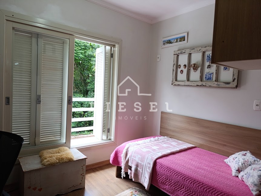 Descrição › Sobrado à venda, bairro Universitário, com 3 dormitórios, banh. social mais lavabo, churrasqueira, garagem coberta. Possui esquadrias em madeira, área de serviço separada, sala de jantar e estar integradas, com lareira. A localização desse imóvel é um diferencial, pela proximidade com a Univates.